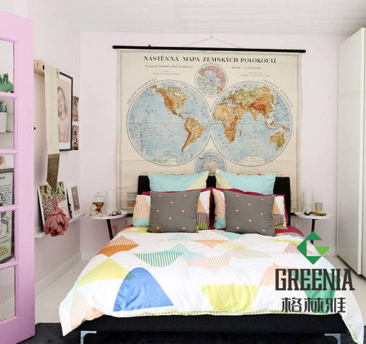 卧室选用防火饰面板是可以根据房间主人相应的搭配,上图是女生的卧室,选用的防火饰面板的颜色相对生动、鲜艳。