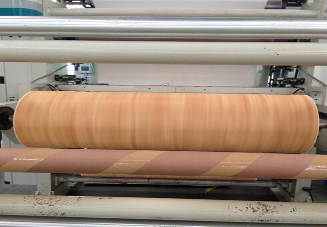 将带有不同颜色的装饰纸和牛皮纸放入到酚醛树脂溶液当中浸泡,然后一张一张的堆叠好,再放入压制板材的机器中覆以想要制作纹理的钢板,机器的两项参数分别为:温度在华氏300度(约摄氏150度)的高温下,加以每平方英寸1430磅的压力,持续均衡施压一个小时制作而成。