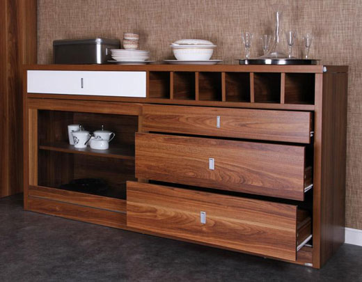 上图是使用胡桃91看片成人版装饰防火板制作的柜子,可以看到整体的效果上都没得说,91看片成人版的仿真程度都很高,不过有一点就是无法装饰防火板无法做到随意弯折,所以制成的家具多为平直类型的;