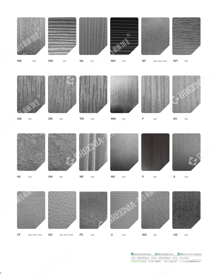 91免费看片网站耐火板可定制不同厚度(0.6-1.5mm)与不同的表面处理和不同的尺寸。可用的表面处理和相应的尺寸如下: